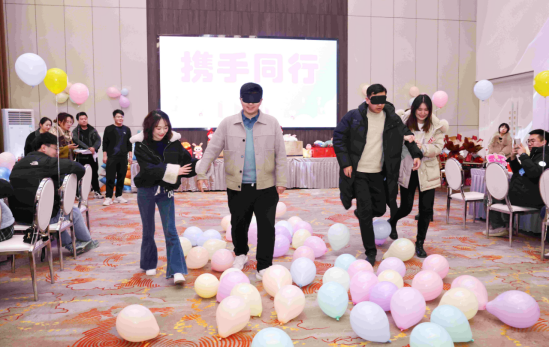 參與此次活動(dòng)的20名單身男青年來(lái)自工程處、工程建設(shè)公司、臨渙礦等單位近年來(lái)新入職高校畢業(yè)生,18名單身女青年來(lái)自淮北市教育、金融、醫(yī)療系統(tǒng)單位。活動(dòng)設(shè)置了“穿越呼啦圈”“搶紙杯”“攜手同行”“踩氣球”“報(bào)紙拔河”等年輕人喜聞樂(lè)見(jiàn)的互動(dòng)小游戲,以小組為單位增添競(jìng)技性,讓每個(gè)人的參與熱情持續(xù)高漲。在現(xiàn)場(chǎng)主持人的引導(dǎo)下,游戲“熱身”產(chǎn)生了很好的效果,男女青年從陌生到熟絡(luò),迅速打成一片,紛紛敞開(kāi)心扉,大膽展示自己、表達(dá)想法,整個(gè)活動(dòng)氛圍輕松愉悅,充滿了歡聲笑語(yǔ)。