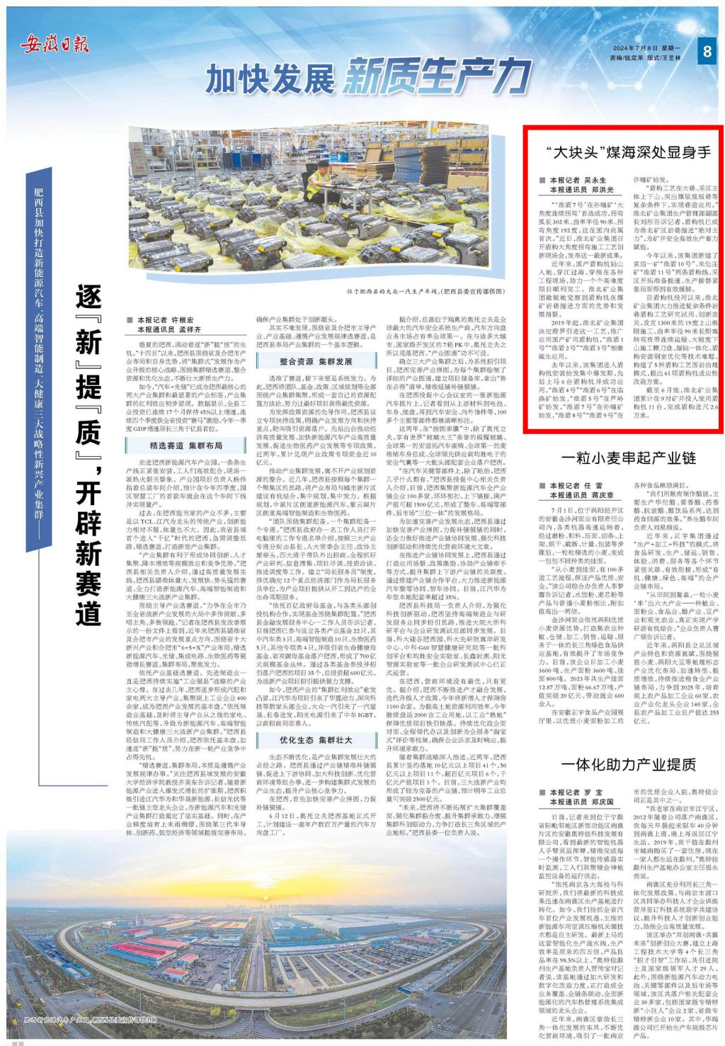 《安徽日報》:“大塊頭”煤海深處顯身手