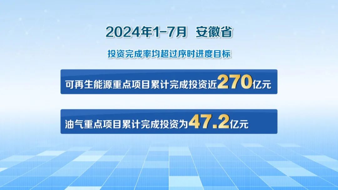 今年1-7月,全省累計完成能源重點項目投資559億元,年度投資計劃完成率為57%,可再生能源重點項目累計完成投資近270億元,油氣重點項目累計完成投資為47.2億元,投資完成率均超過序時進度目標。