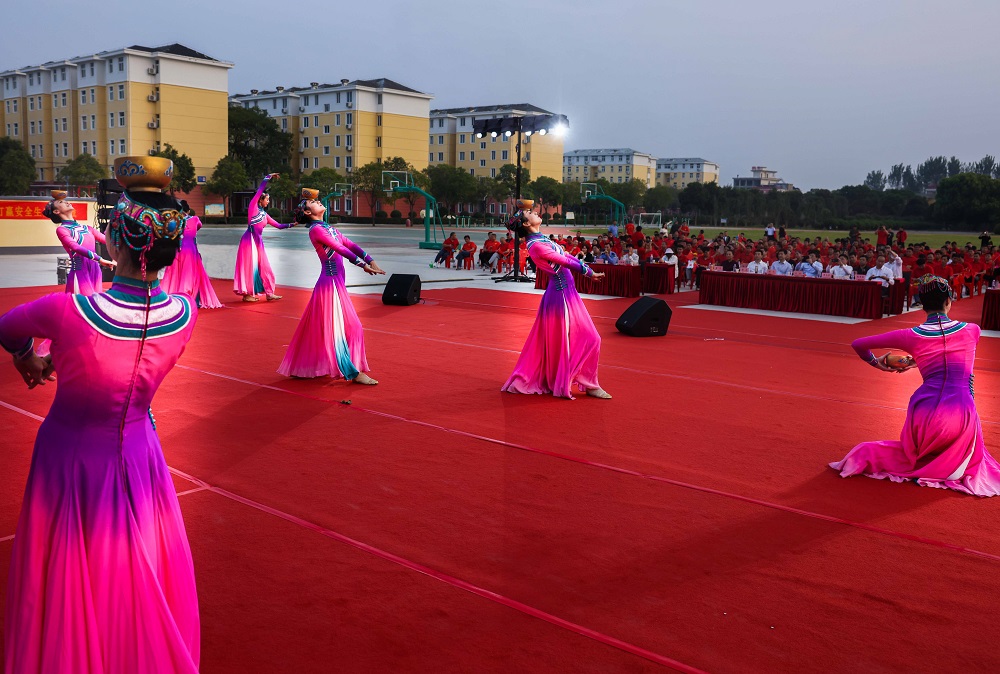 演出在舞蹈《鼓舞神州》中拉開序幕,隨后男女聲二重唱《新萬泉河水》、相聲《機智問答》、魔術《快樂十分》、京劇《武家坡》、小品《金錢與孝子》等節目輪番上演。一首首膾炙人口的歌曲,一段段婉轉悠揚的旋律,一支支優美多姿的舞蹈,讓現場觀眾沉浸在歡樂的氛圍中。臺上演員們全情投入,臺下觀眾積極互動,或跟唱歌曲,或打著節拍,現場氣氛融融。最后,演出在歌曲《奮斗吧追夢人》中圓滿落下帷幕。